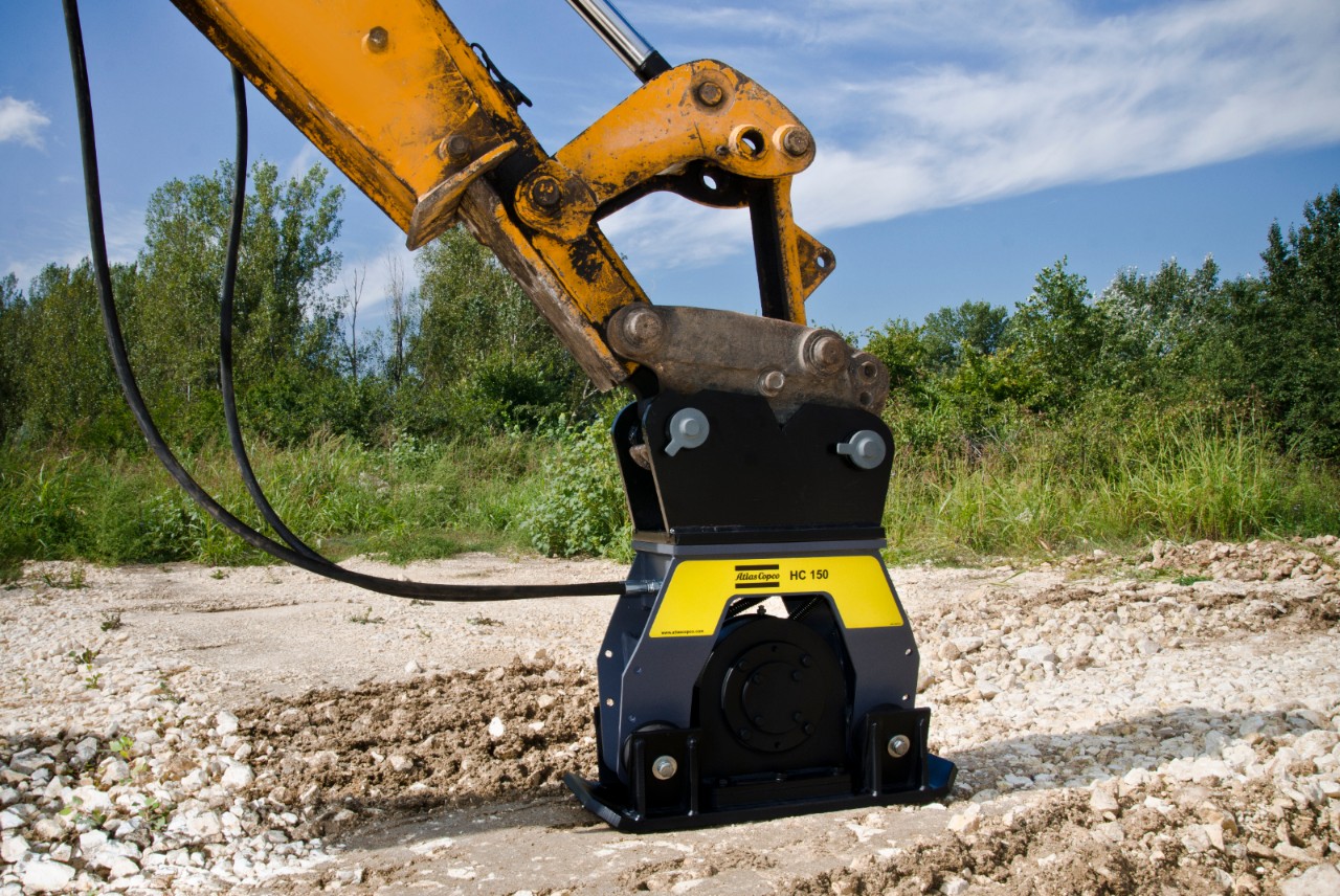 Schnell und sicher : Ein Anbau Verdichter verursacht weniger Lärm und bietet zusätzliche Sicherheit insbesondere beim Einsatz in Gräben. Niemand muss sich mehr im direkten Arbeitsbereich aufhalten