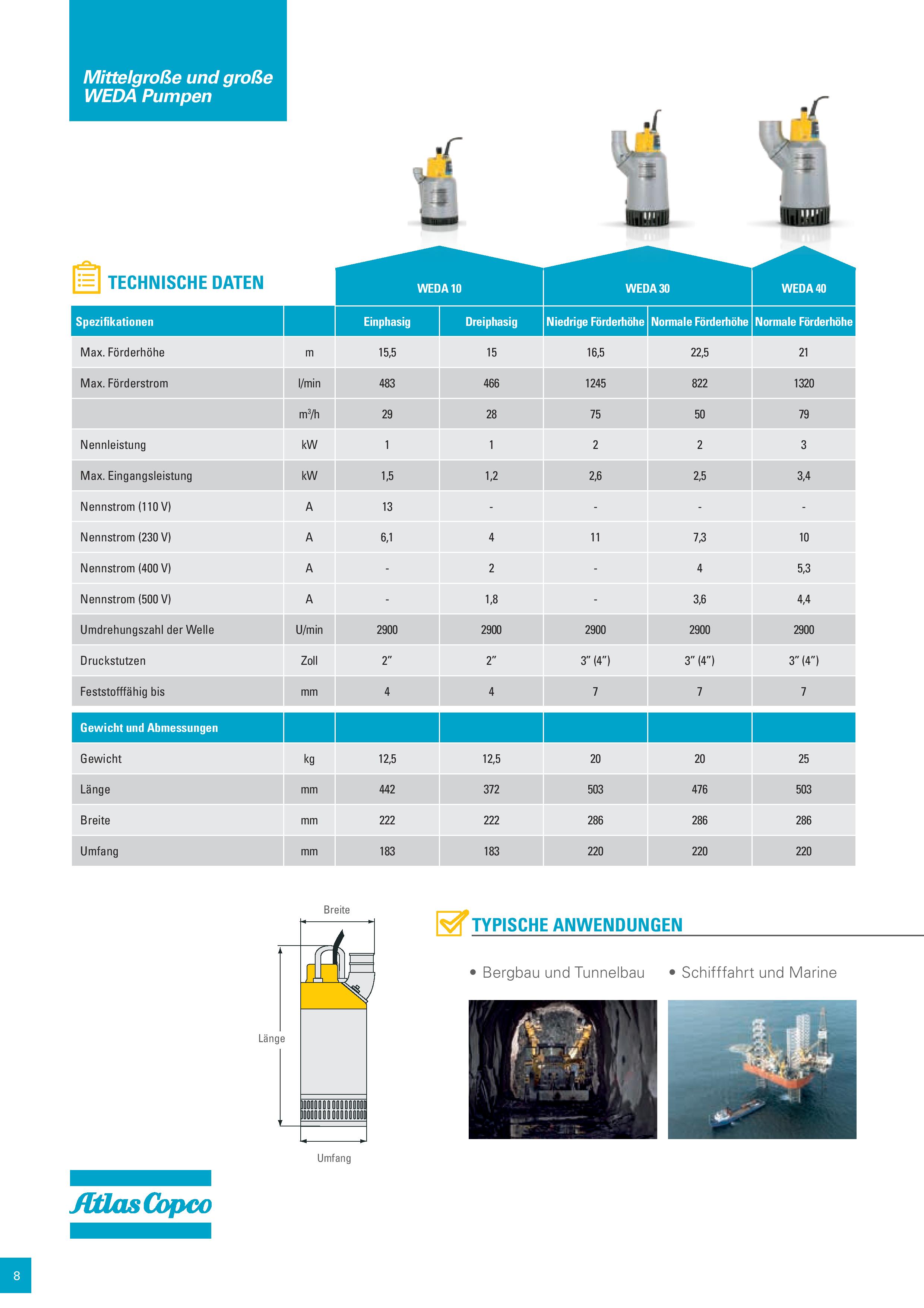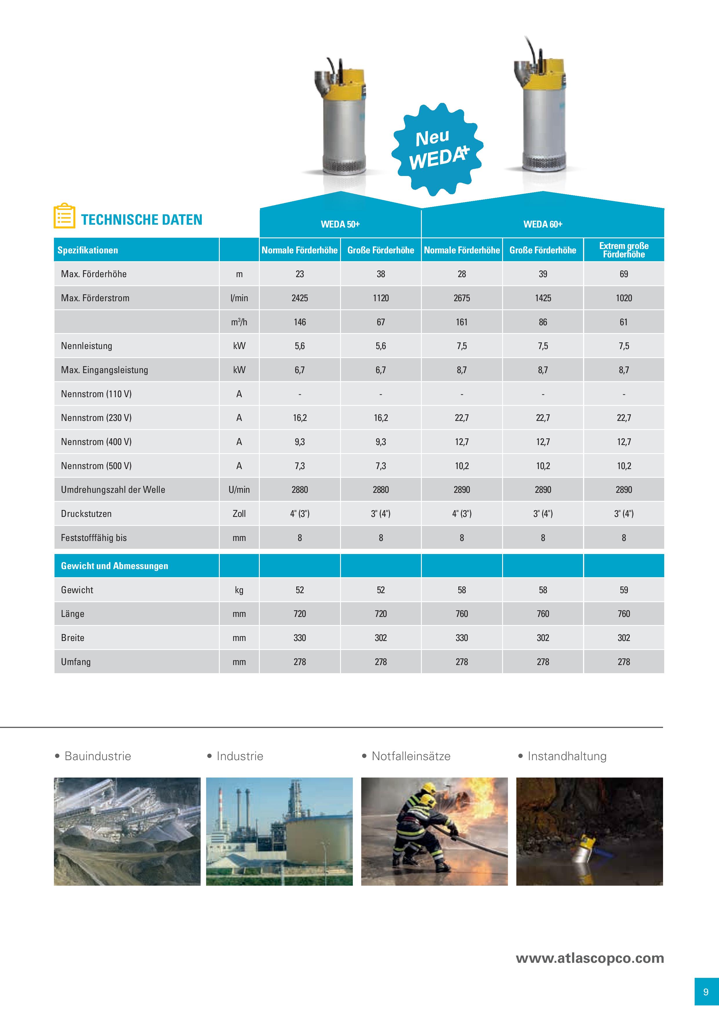 Weda Pumpen und Zubehör wurden für eine breite Spanne von Entwässerungsaufgaben in den verschiedensten Industrien entwickelt. Sie bieten die Leistung, Zuverlässigkeit und einfach Bedienung, die Sie benötigen. WEDA Pumpen verfügen über einen integrierten Starter, ein Motorschutzsystem und eine optionale Wasserstandskontrolle. Einstellbare, verschleißfeste Gummidiffusoren und Laufräder aus hochfestem Chromguss gewährleisten Langlebigkeit unter harten Einsatzbedingungen.